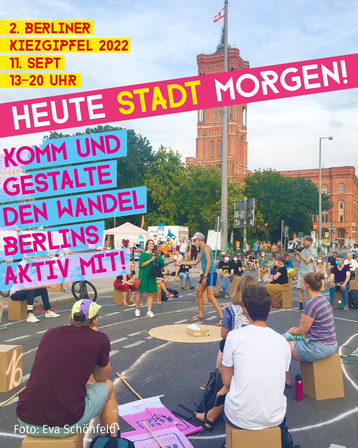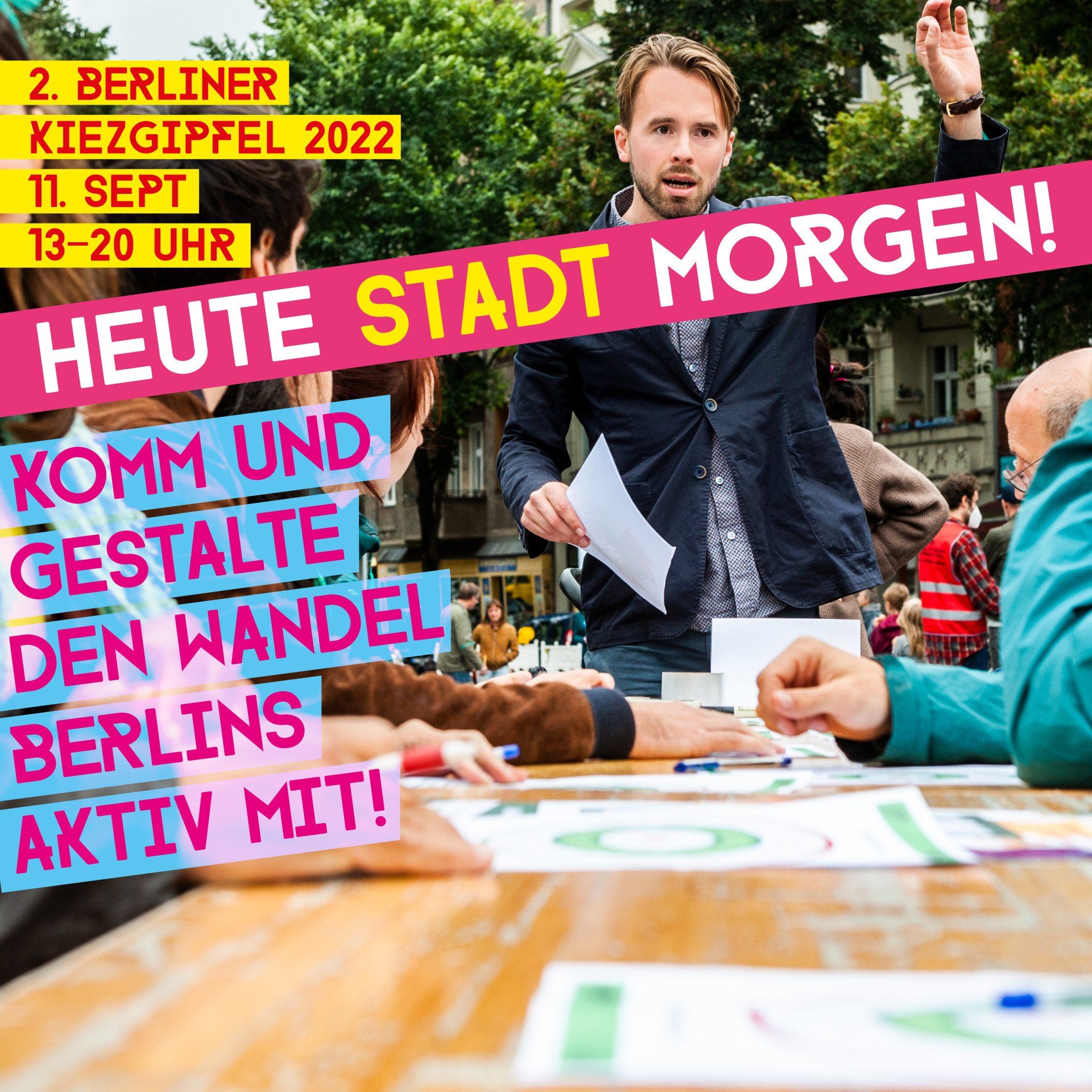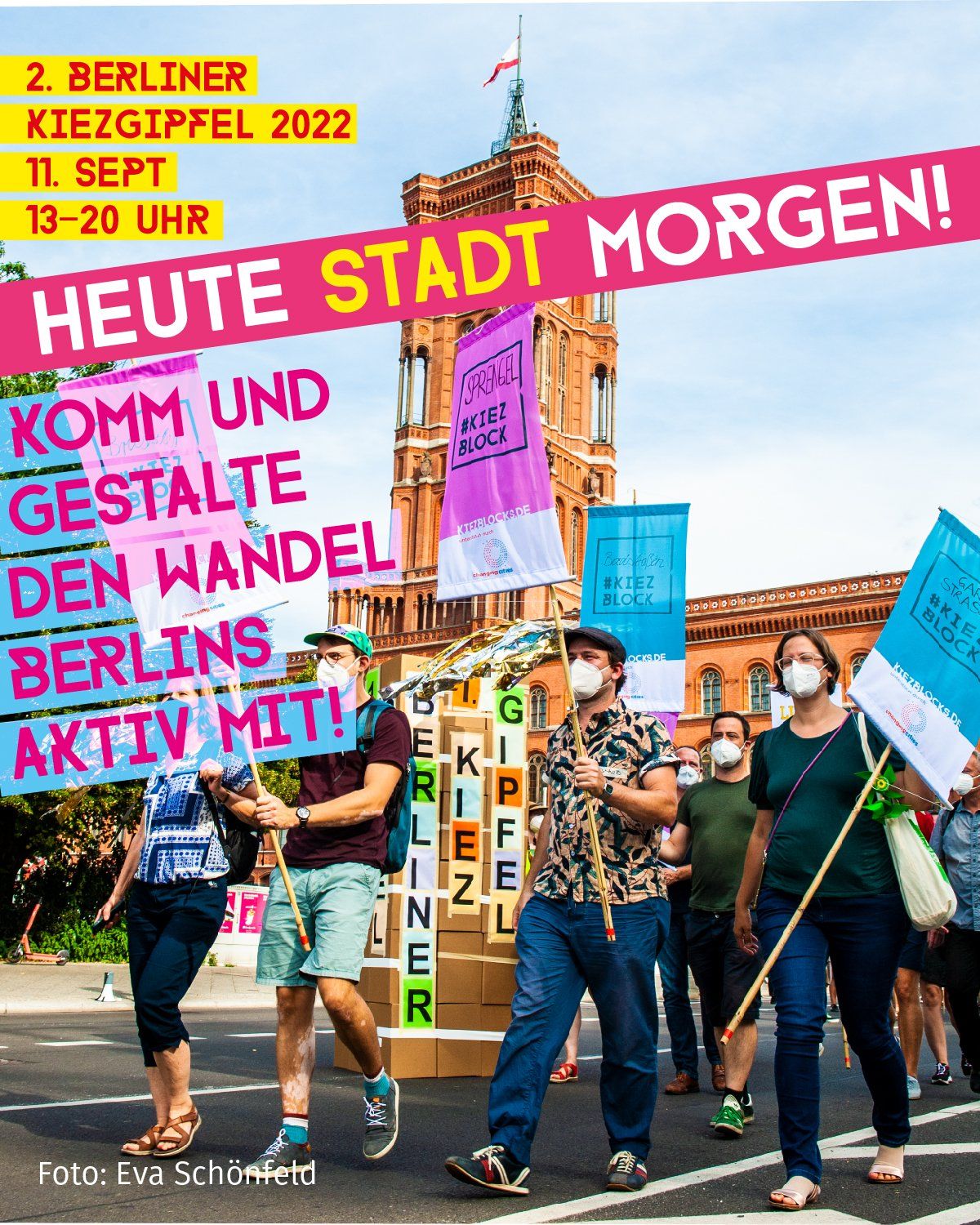 المشاركة في قمة الحي هي: مبادرات الأحياء والأحياء المختلفة، تغيير المدن، Berlin21، Klimaneustart، Extinction Rebellion، Litterpicker، Day of the Good Life، KIEZconnect، Fridays for Future، Grandmas against the Right، Yeşil Cember، Open. Dreams Brandenburg eV، Transformation House & Field، Open Society Institute، More Democracy eV، Circus Cabuwazi، Moos، bUm - Space for Solidarity، Urbanstrasse Neighborhood House، Omas for Future، Donut Berlin، PowerShift، Economy for the Common Good Berlin / Brandenburg؛ مهندسون معماريون من أجل الدخل الأساسي للمستقبل والبعثة، جوليبا فولت، الطائرات الورقية فولت ومبادرات أخرى. كضيوف - Hansaforum Münster