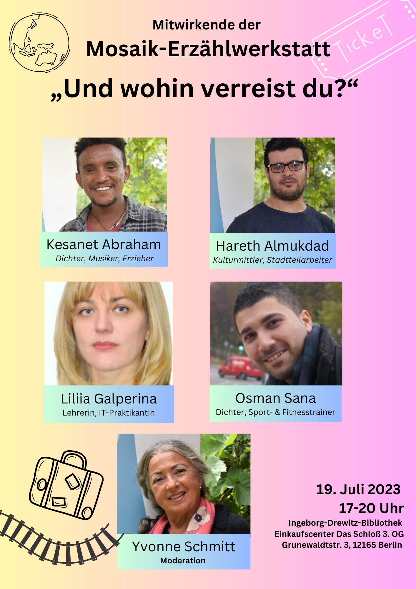 | 07/19/23, 5-7 p.m | "And where are you traveling to?" | Storytelling workshop in the castle | Ingeborg Drewitz Library, Steglitz |