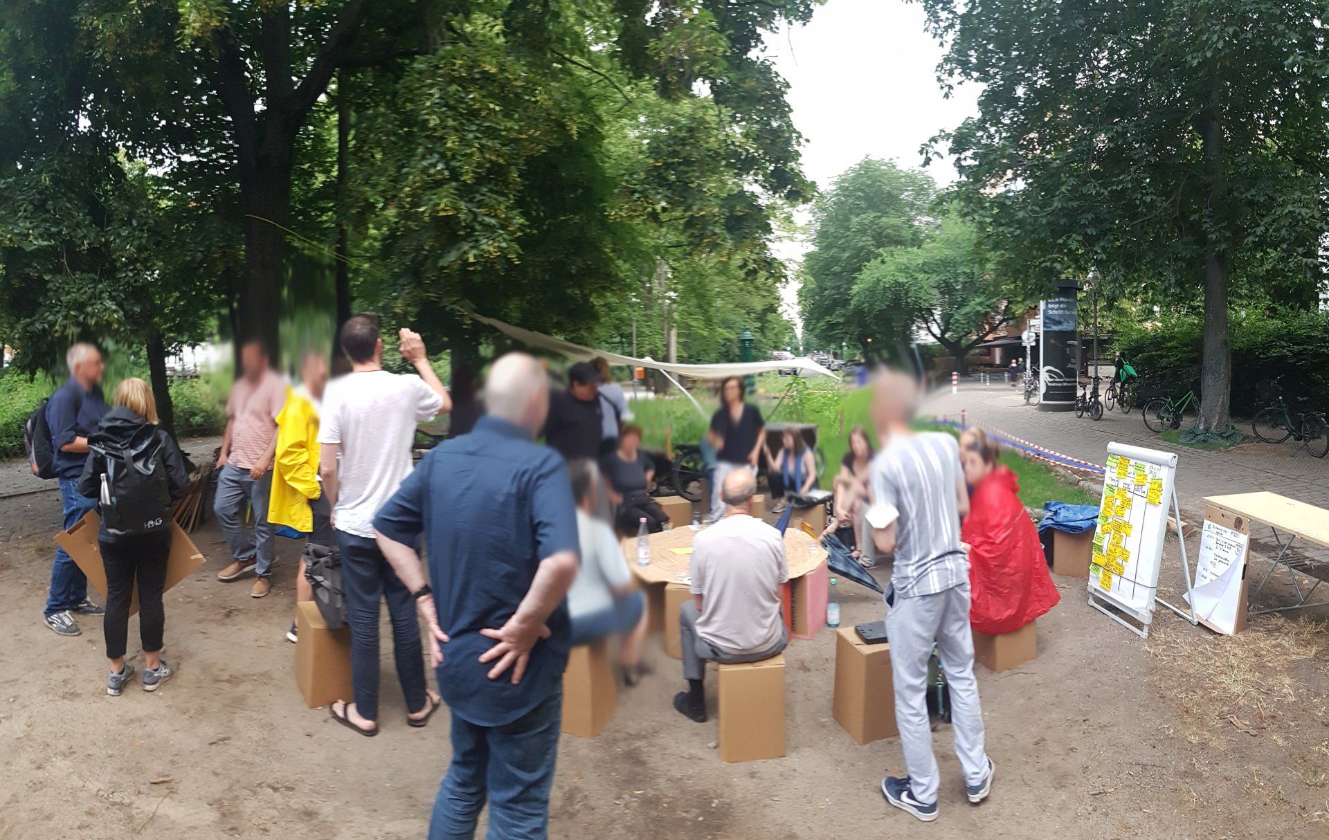 - Punto de encuentro ubicado en el centro del vecindario Lugar soleado y hermoso (con sombra, por ejemplo, un árbol) Bajo umbral, visible, atractivo y natural Aquí el vecindario activo puede reunirse para discutir, celebrar y pasar el rato. Proyecto muy importante, porque sin este lugar no habría corazón latiendo en el KiezSuper adecuado para conocer gente nueva en reuniones informales semanales/intercambiar ideas e invitarlos a participar