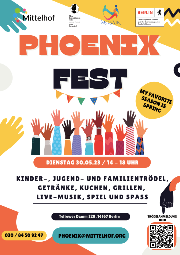 | 23/05/30، 14 الی 6 بعد از ظهر | کارگاه جلسه | جشنواره محله ققنوس برای هفته محله | Teltower-Damm 228, 14165 Berlin, Zehlendorf-Süd |